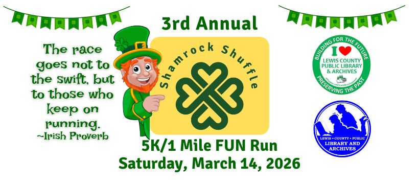 The 2024 Shamrock Shuffle 5K & 1 Mile Fun Run will take place on Saturday, March 16, 2024. The race will begin and end at the Library.